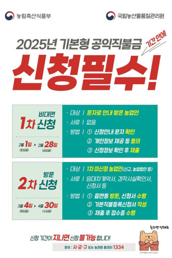 2025년 공익직불금 신청이 2월 1일부터 4월 30일까지 진행됩니다.