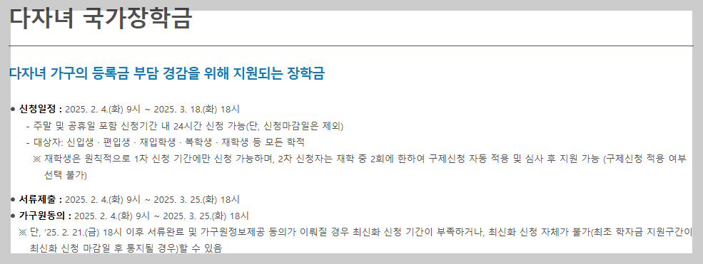 📌 다자녀 가구 대학생을 위한 장학금