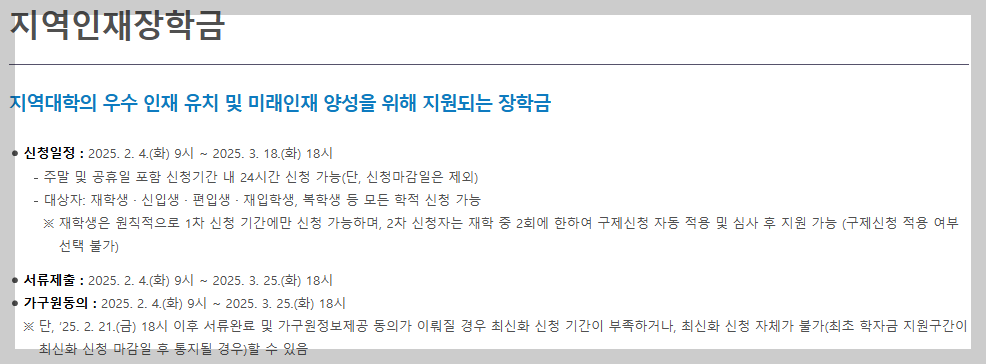 - 재학생: 기존 지역인재장학생으로 선발된 계속지원자