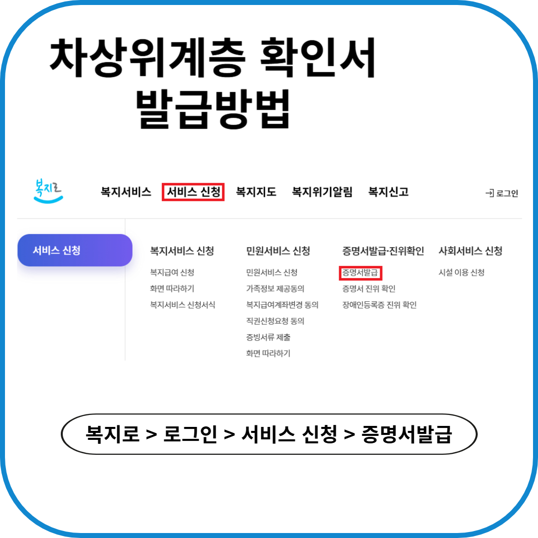 4️⃣ "차상위계층 확인서" 발급 신청 버튼 클릭