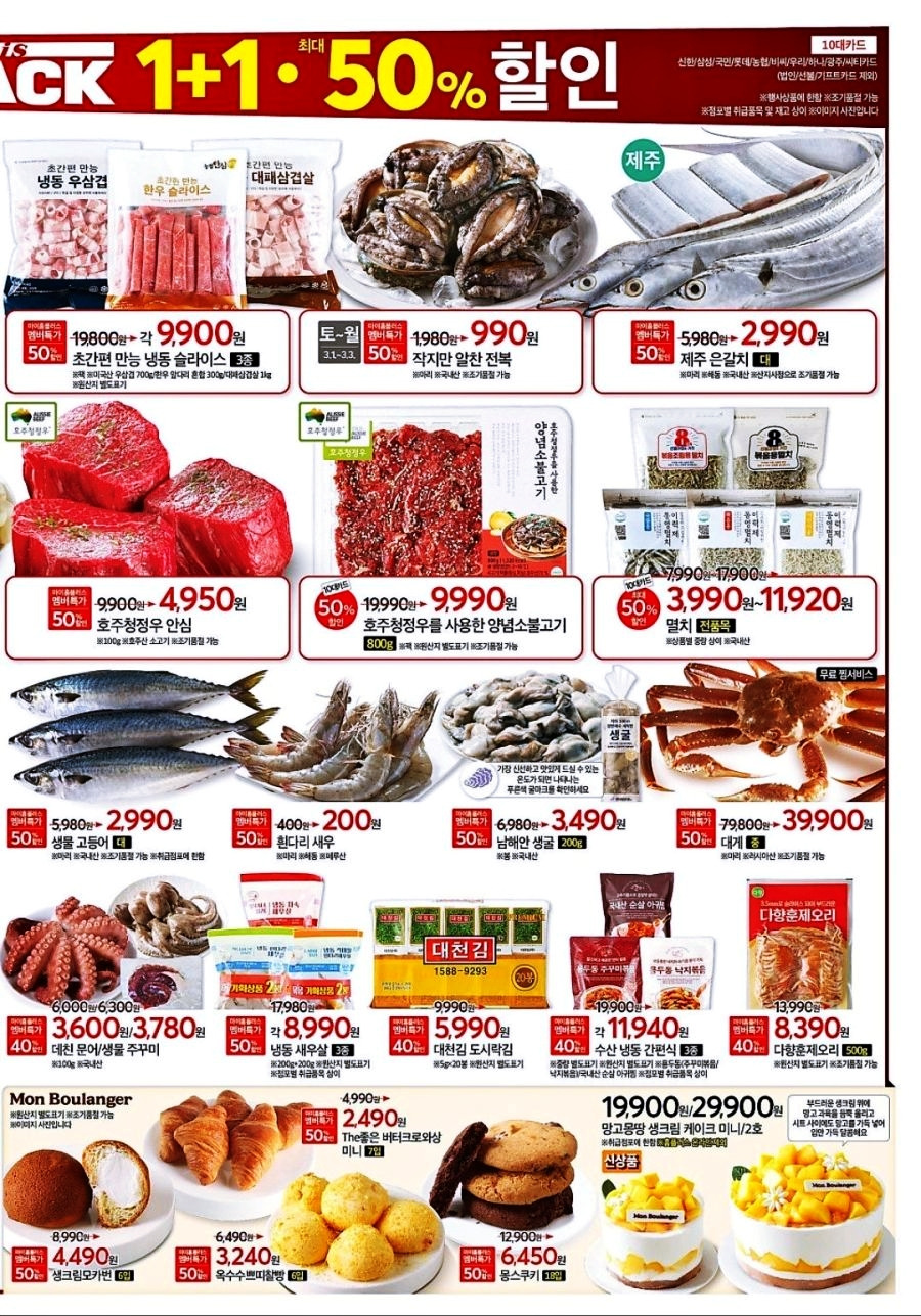 - 농협안심한우 전 품목 – 마이홈플러스 멤버십 회원 50% 할인 (2/28 ~ 3/3)
