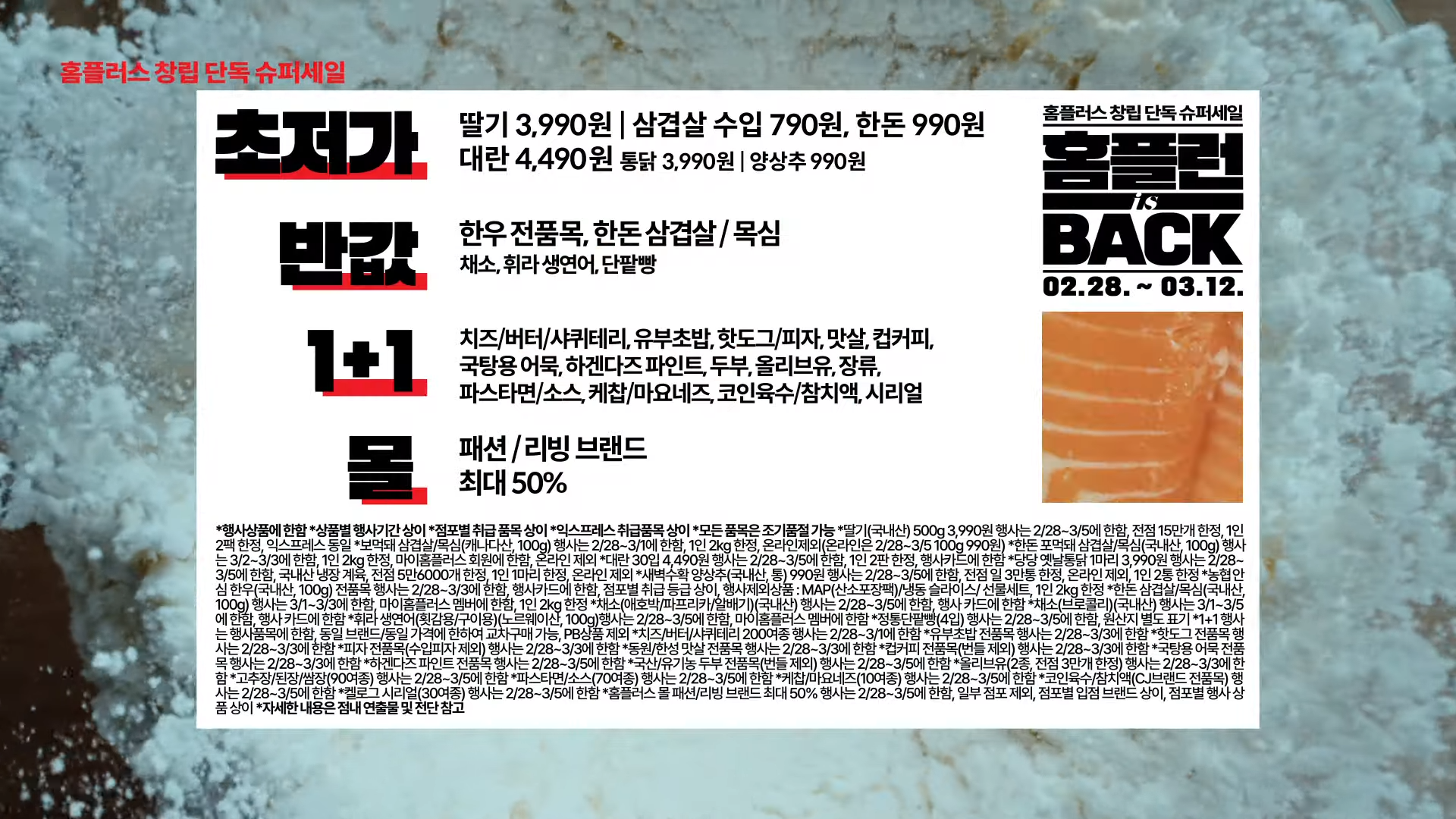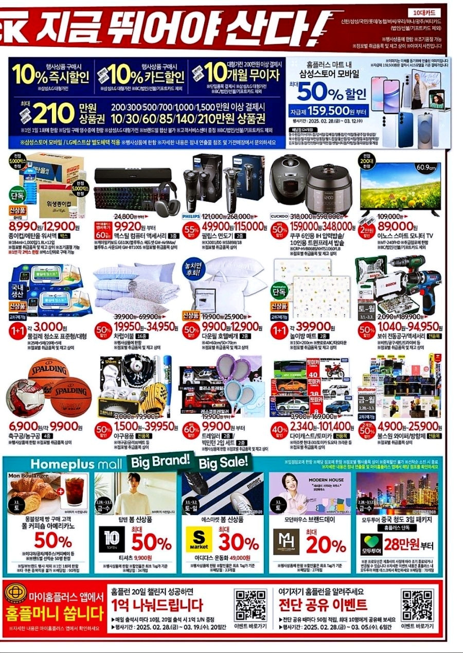 홈플러스의 창립 단독 행사, 홈플런 전단 세일이 2월 28일(수)부터 3월 12일(화)까지 진행됩니다!